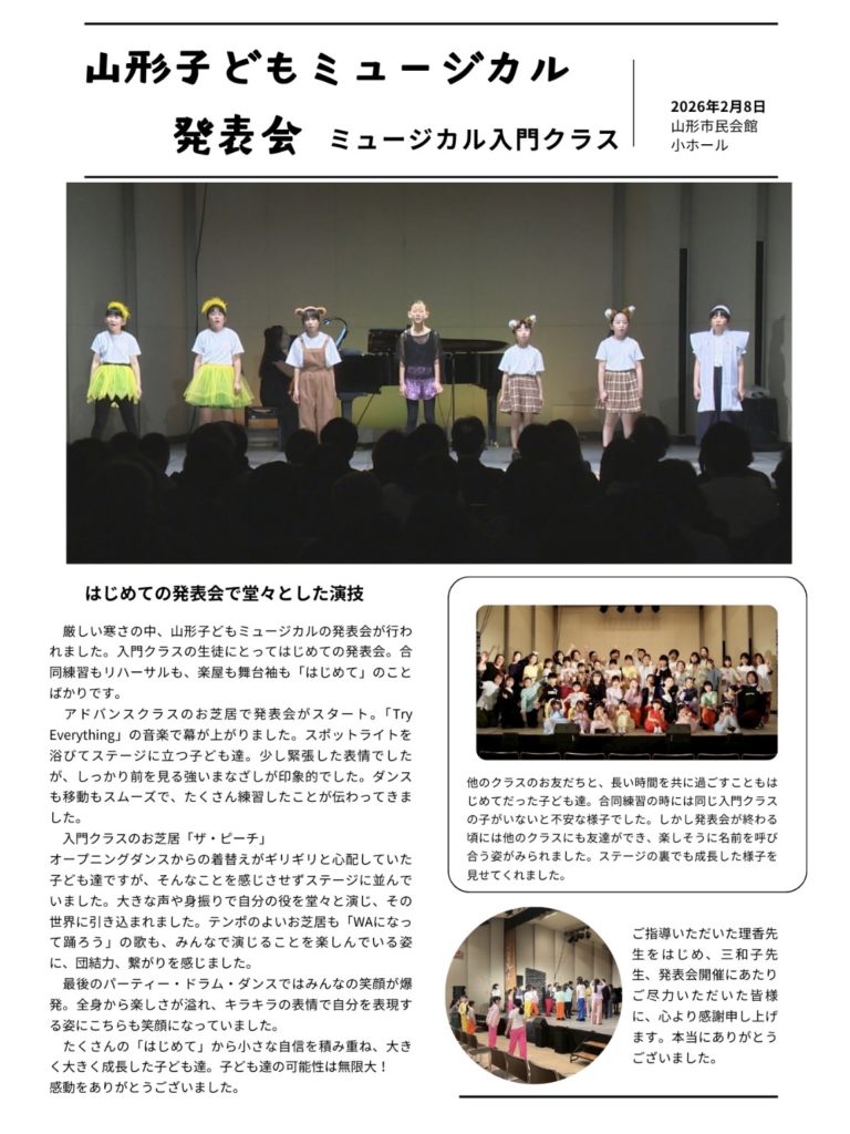 第3回山形子どもミュージカル発表会が行われました♪